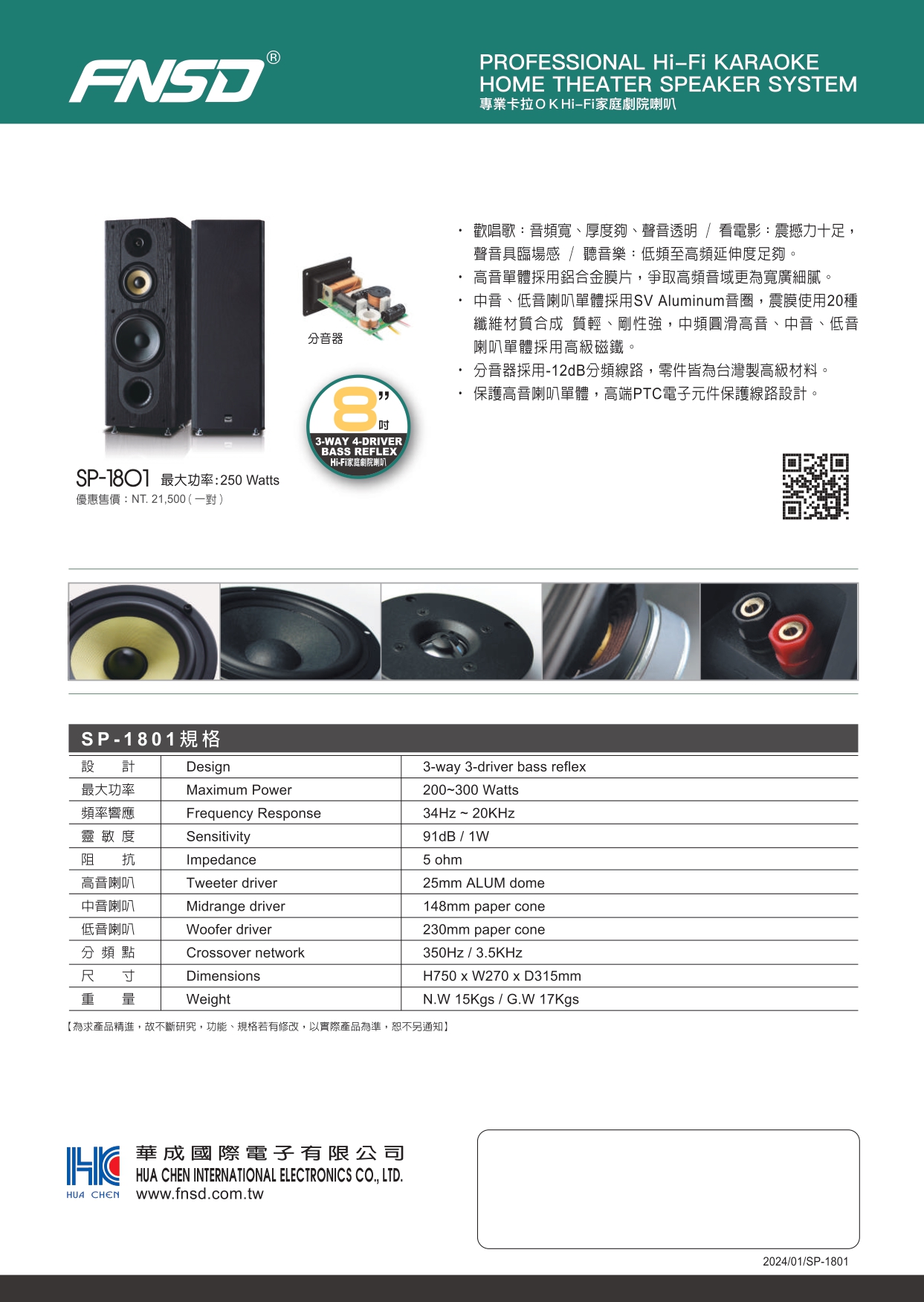 FNSD SP-1801 8吋低音喇叭 三音路三單體 家庭劇院卡拉OK主聲道喇叭